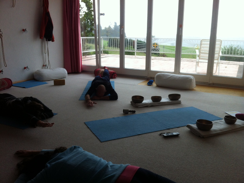 An 3. Abenden wird eine spezifische, therapeutische Yoga Form praktiziert, die ich innerhalb der vergangenen 11 Jahre, konform meiner zunehmenden Erfahrungen mit Patienten sowie Praktizierenden aller Alters- und Konstitutionsgruppen entwickelt habe. Das hier angebotene, therapeutische Yoga wird aus der liegenden Position Savasana heraus praktiziert und ist besonders wirkungsvoll, wenn stressbedingte körperliche und/ oder psychische Leiden vorliegen.